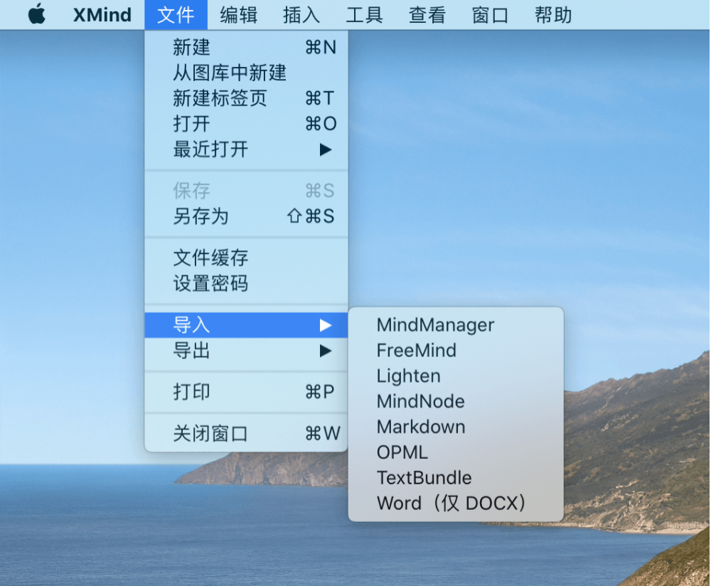 可将常见思维导图软件的文档导入至 XMind 2020 中,包括 MindNode、MindManager、Lighten 等。即使之前用的是其他导图软件,也不必担心格式兼容问题。
