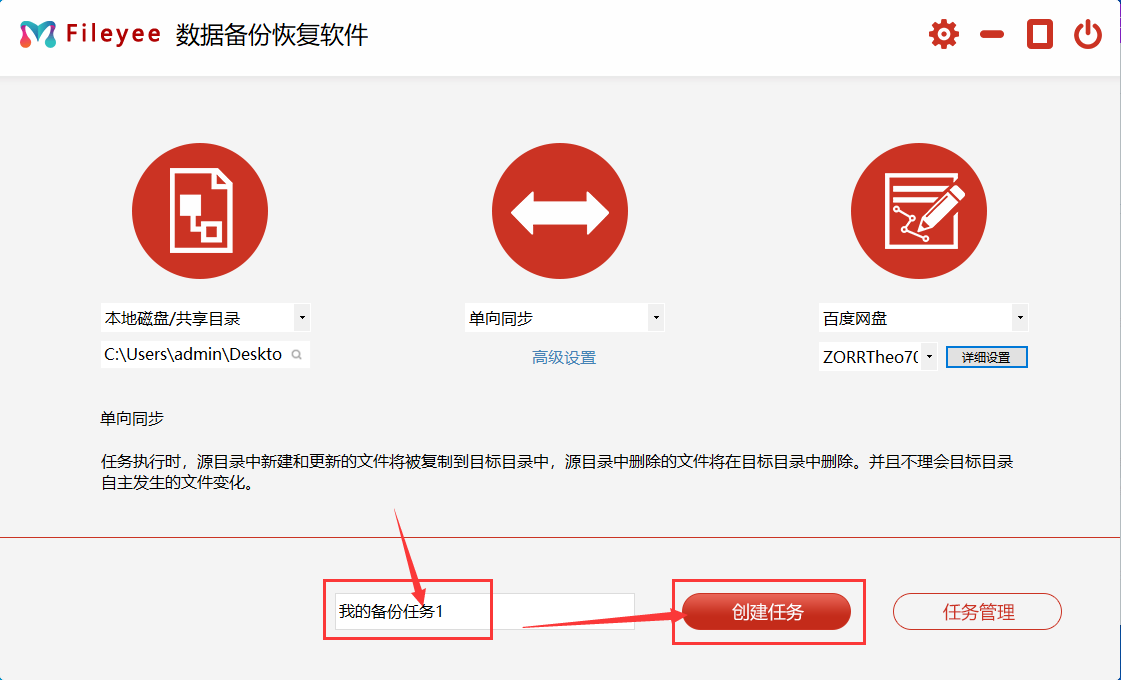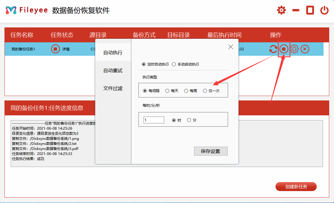 步骤3,输入任务名,也可以不设置,采用软件默认给你的任务名,然后点击“创建任务”,这样一个文件自动备份任务就建成了。