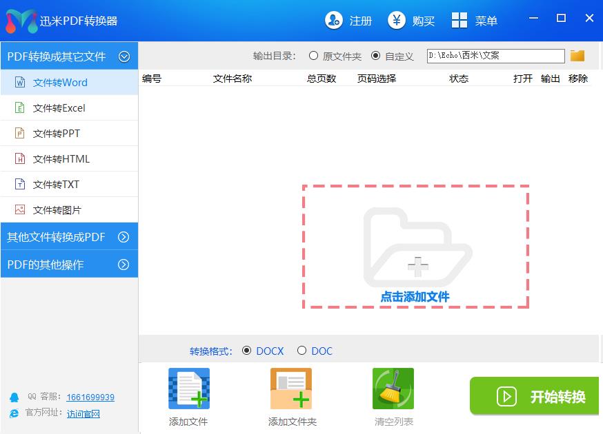 如下图所示,点击添加文件,可以选择需要转换的PDF文档。