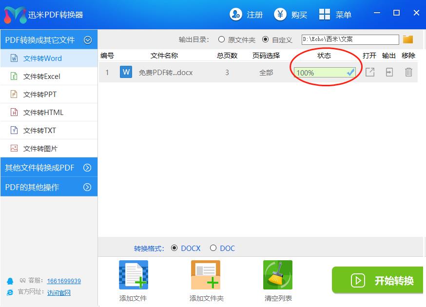 转换成功后状态会更新成100%,即转换完成,打开即可打开转换的文档。转换时间依据文档的大小,正常2M的文档一般转换2分钟,也可以查看文档转换的总页数!