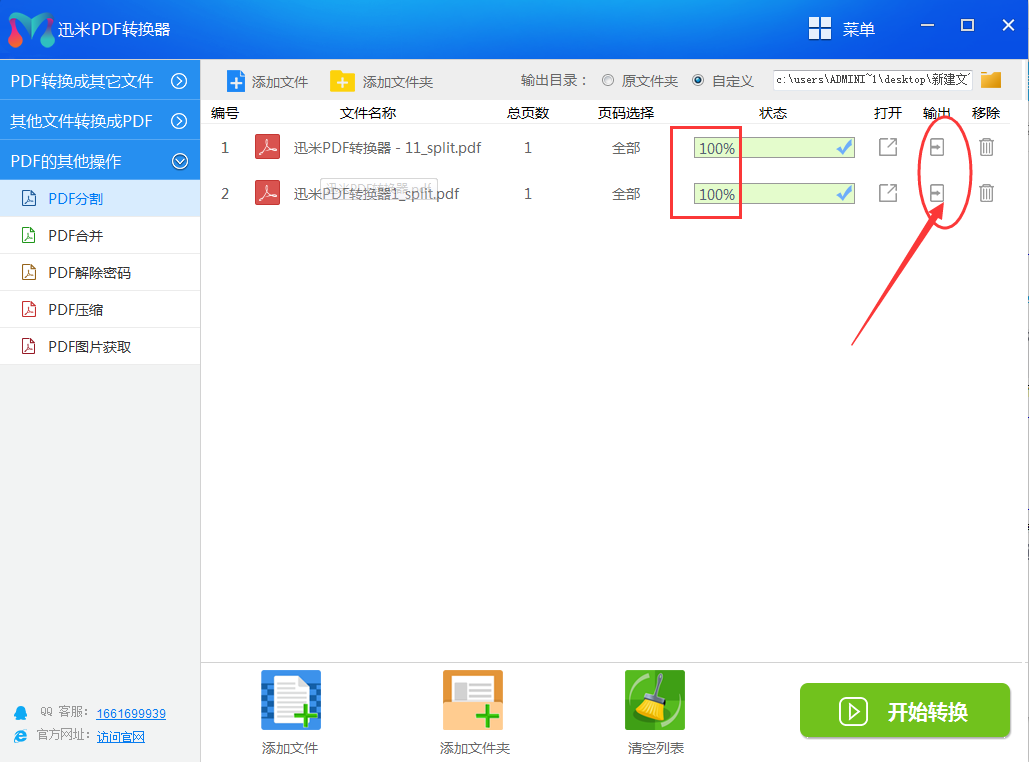 步骤5,当软件右侧文件列表中的状态栏变成100%的时候,说明软件已经成功的对PDF文件进行压缩,点击右边的图标,就可以查看压缩后的文件啦。