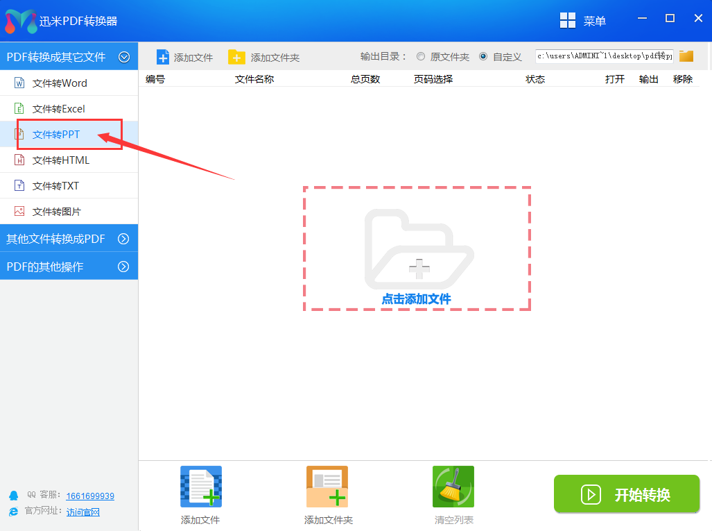 步骤1,打开迅米PDF转换器,在左侧列表中依次找到并点击【PDF转换成其它文件】-【文件转PPT】功能,从这里进行接下来的转换操作。