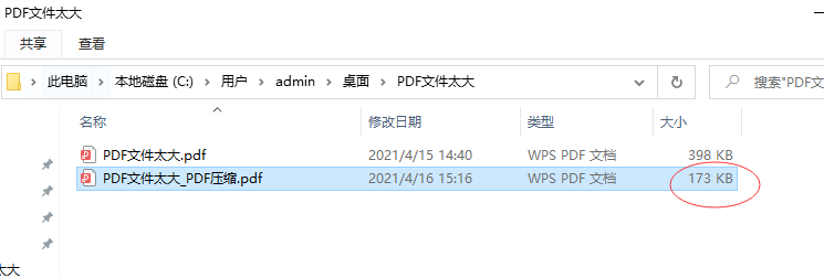 步骤5,从我的案例中可以看出,被压缩后的文件只有173KB,而源文件大小是398KB,压缩效果还是很好的。
