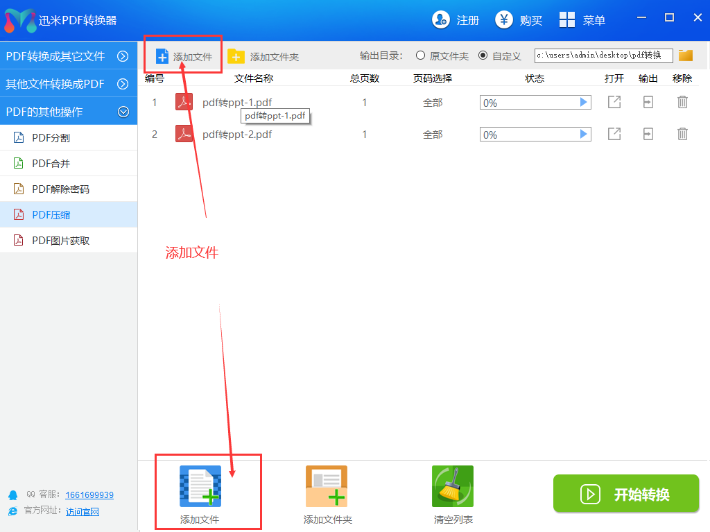 步骤1,打开迅米PDF转换器,软件的左边是功能列表,一共有十几个功能,一次点击【PDF的其他操作-PDF压缩】功能。