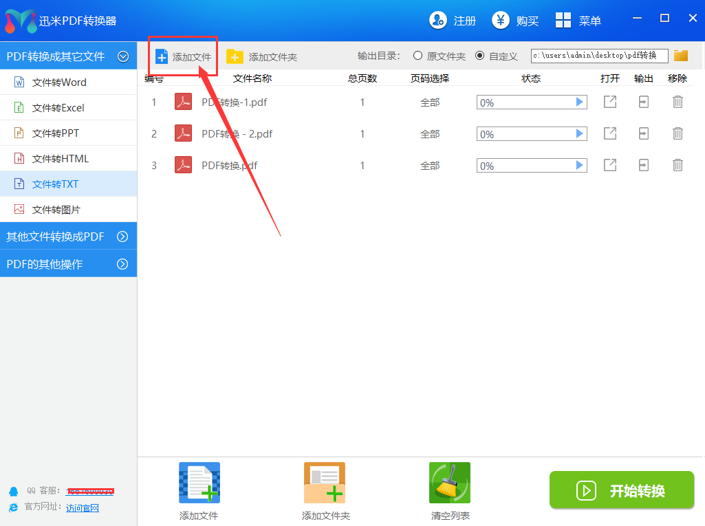 步骤3,然后右上角位置设置转换后txt文档的保存路径,然后点击下方的【开始转换】按钮,启动转换程序。