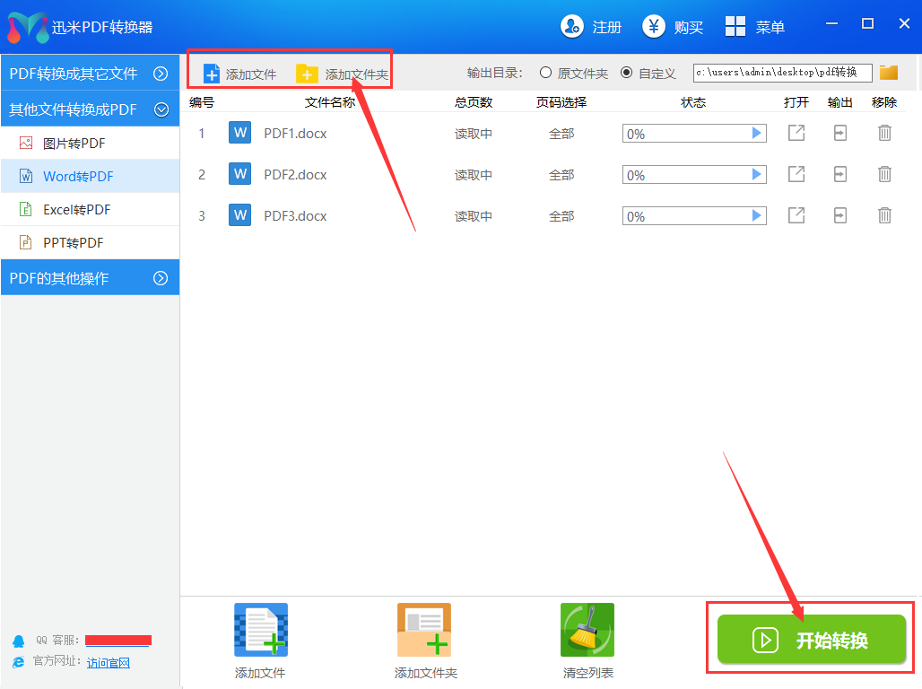 另存为的方法虽然好用,但如果遇到大批量word文件需要转换的时候就不是很好用了,一个一个文件另存为太费时间了,一直在做重复的工作,所以我们需要提高效率。我们可以使用专业的工具,如迅米PDF转换器软件,它可以实现多种文件格式相互转换、批量转换!