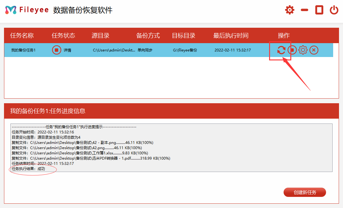 步骤四,待这三项设置完成之后,即可点击“创建任务”了。最后,任务新建完成之后,可以进入到“任务管理”的界面当中。在没有其它设置需求的前提之下,点击右侧的“开始备份”即可实现数据的备份了。