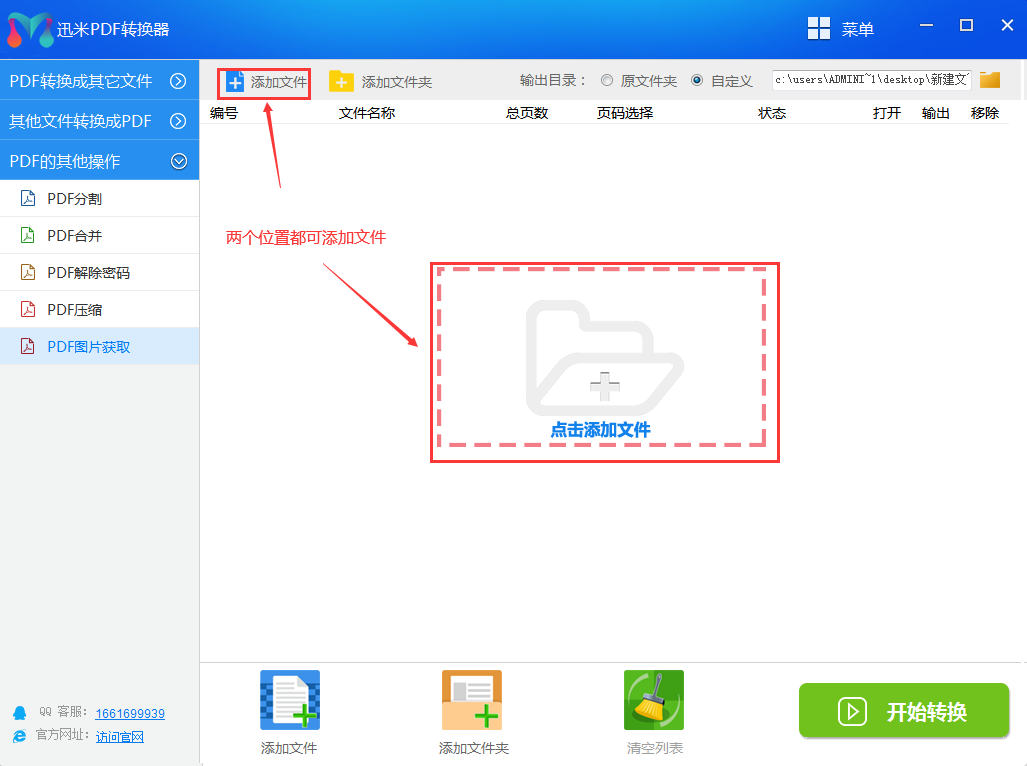 3步:添加PDF文件,我们通过点击两个位置中的任何一个添加文件,如下图所示。并且用户可以同时添加多个PDF文件。