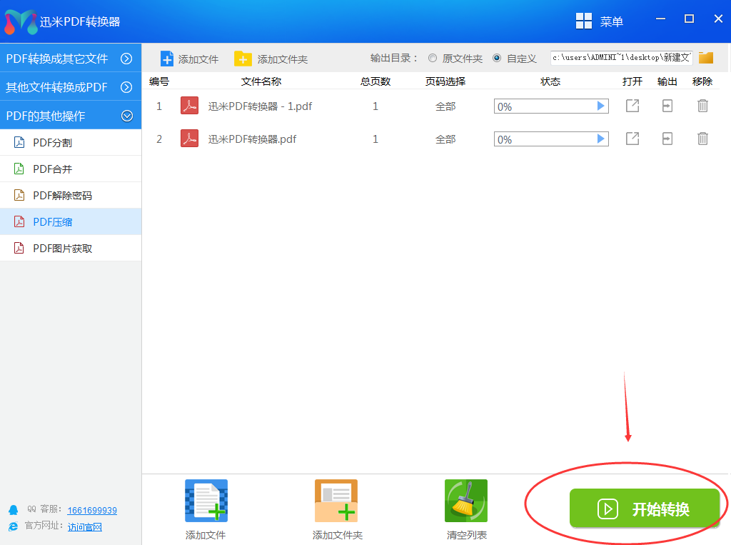 步骤1、下载迅米PDF转换器,安装好软件后打开,在软件主界面左侧可以看到三个列表,这里就是软件的所有功能,我们要进行的是PDF压缩,所以我们要找到并点击“PDF其他操作-PDF压缩”。