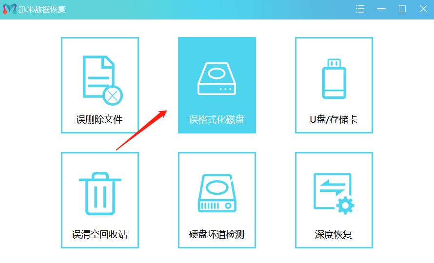 因为磁盘格式化还是比较严峻的问题,所以需要借助专业数据恢复软件,这里推荐大家使用迅米数据恢复软件,自行百度搜索关键词迅米数据恢复,操作非常简单,具体如下所示: